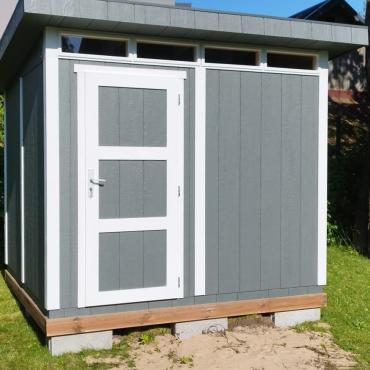 - Mājiņas paneļi un grīda jau ir rūpnieciski gruntēti un sagatavoti krāsošanai