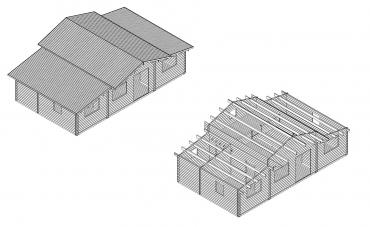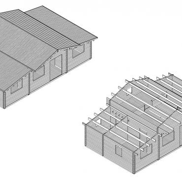 - Mājas sienas no 44mm frēzētām brusām (egle);