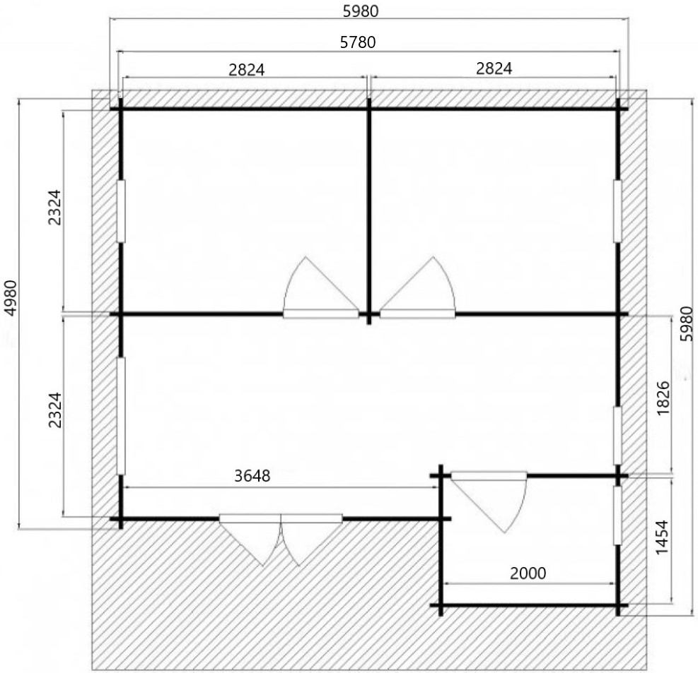 - Koka rāmju logi un durvis ar stikla paketēm;