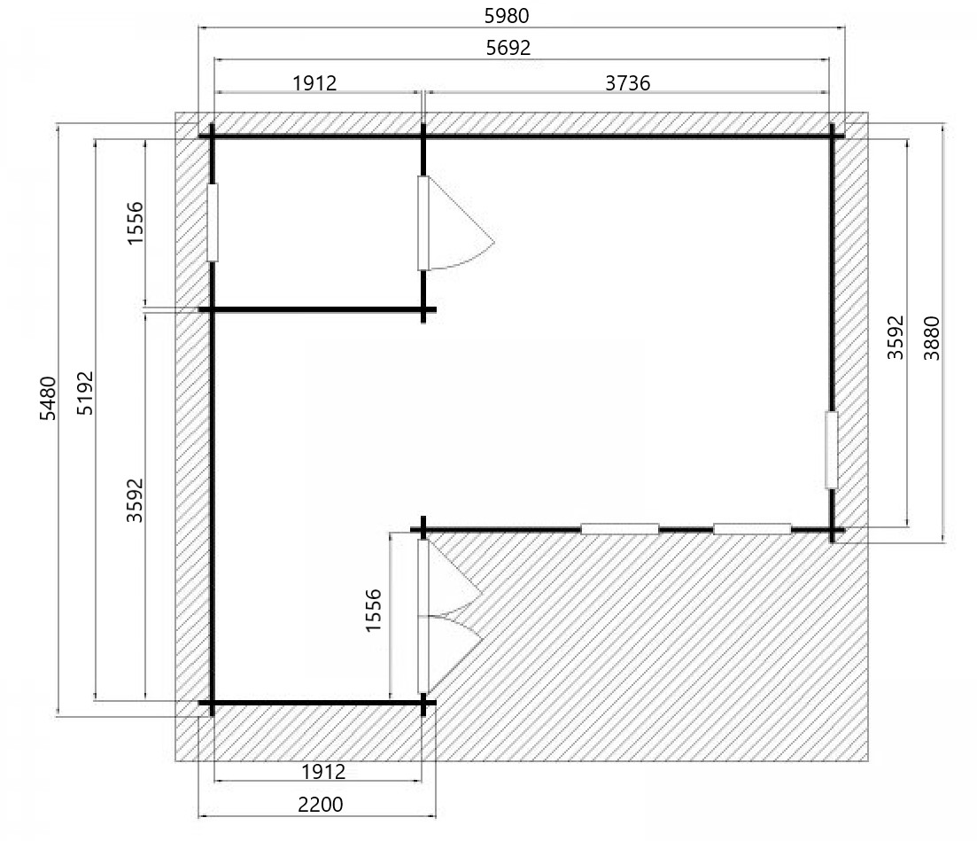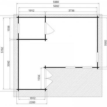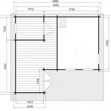 - Grīda no 19 mm spundētiem dēļiem, grīdlīstes;