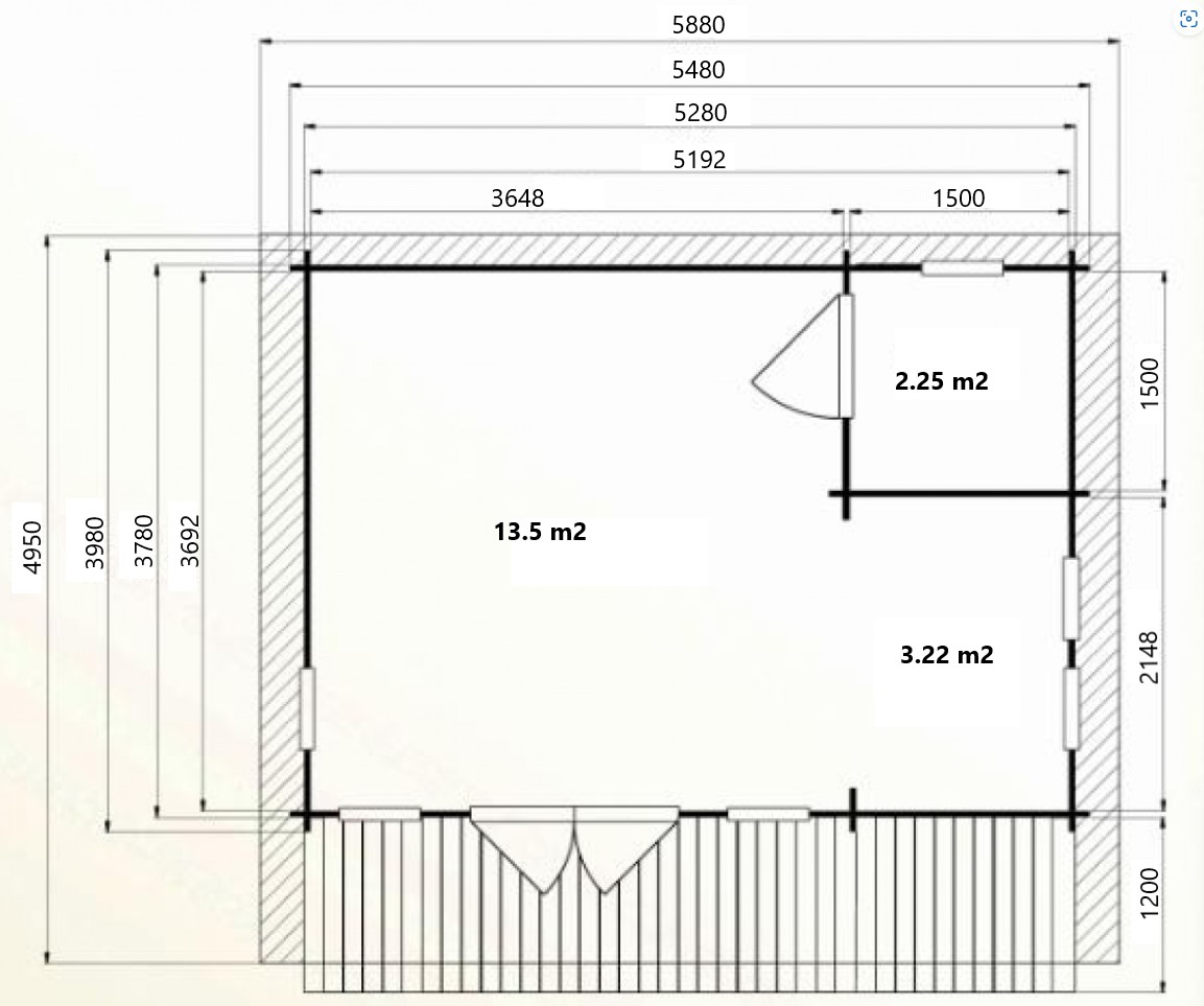 • Grīda no 19 mm spundētiem dēļiem, grīdlīstes;