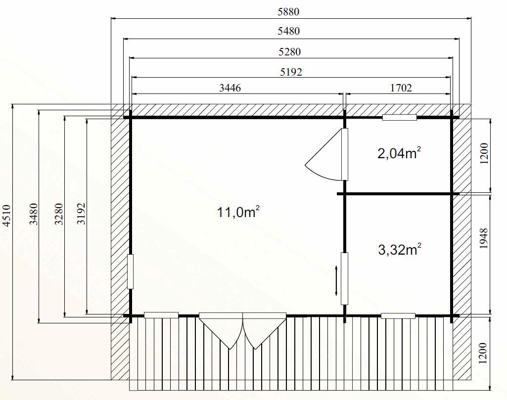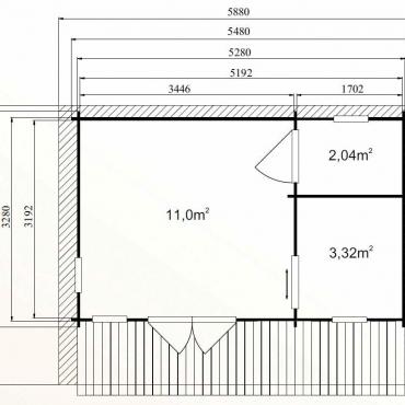 • Grīda no 19 mm spundētiem dēļiem, grīdlīstes;