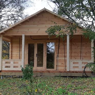 • Пропитанная террасная доска толщиной 28 мм и перила для террасы;