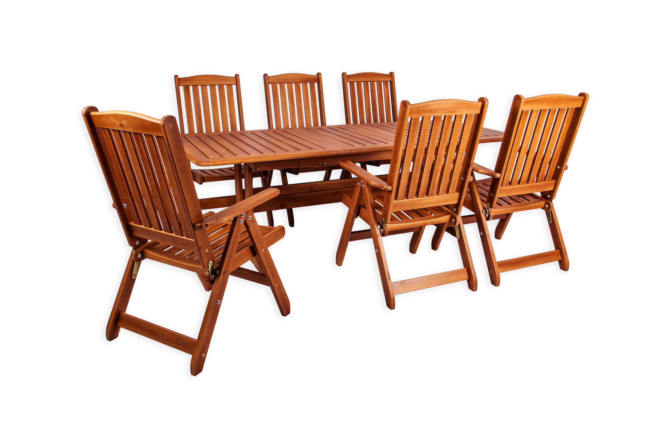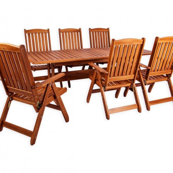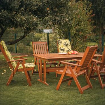 - Раздвижной стол с дополнительной секцией + 6 складных стульев с регулируемой спинкой.