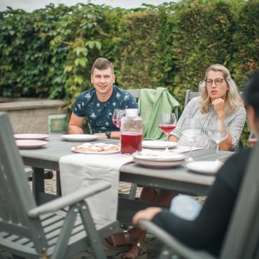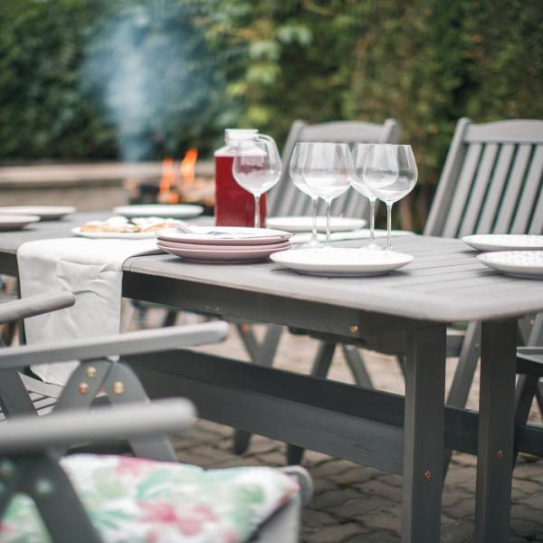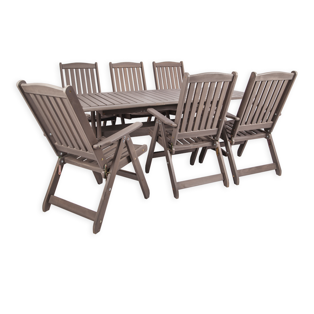 • Раздвижной стол с дополнительной секцией + 6 складных стульев с регулируемой спинкой.
