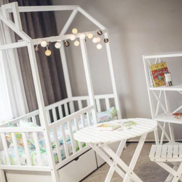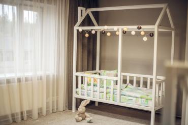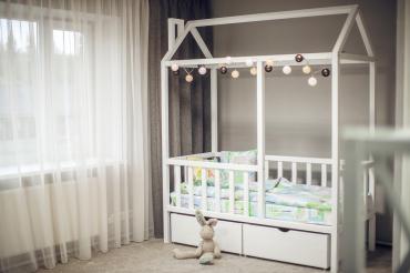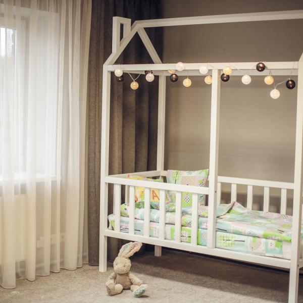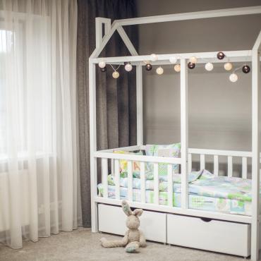 • Детская кроватка в виде домика — уютное место, где можно не только комфортно спать, но и найти множество идей для увлекательных игр.