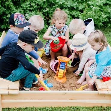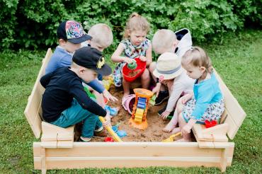 - Песочница оснащена крышкой для поддержания чистоты песка, крышка при открытии превращается в сиденье.