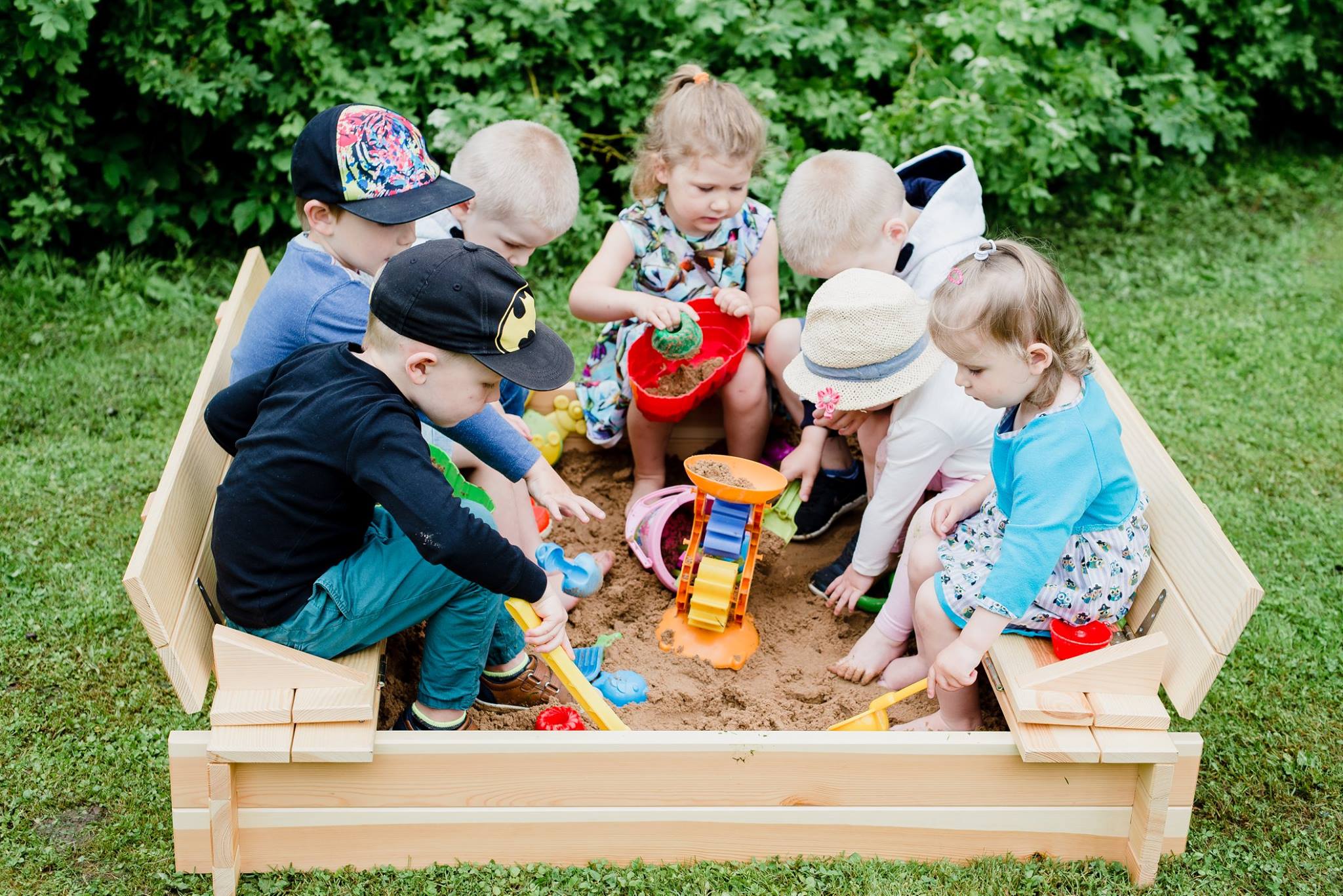 - Четырехугольная песочница с раскладной крышкой.